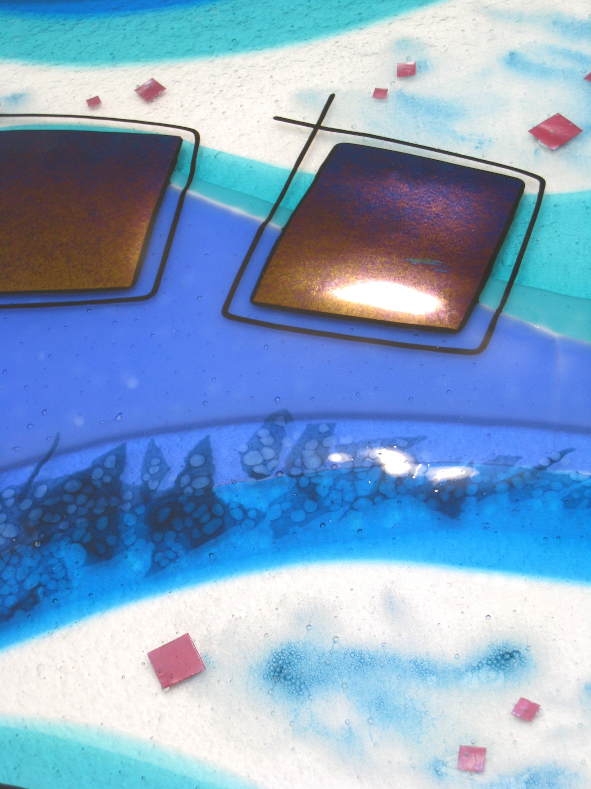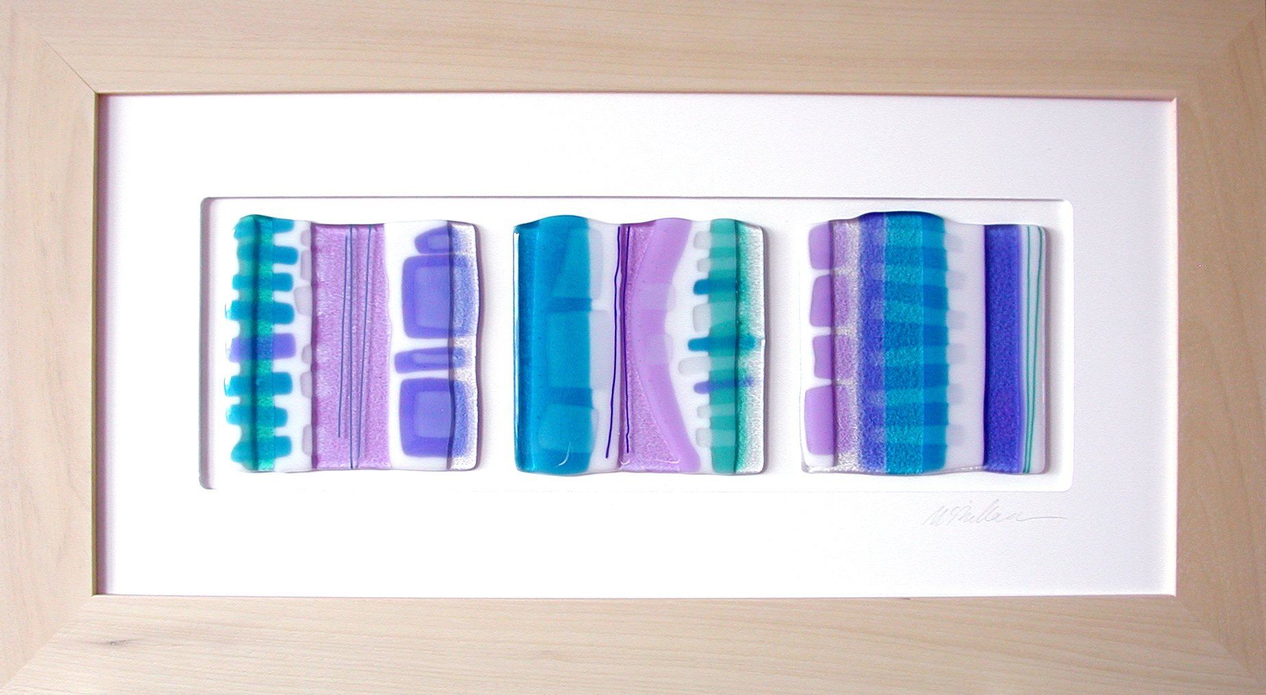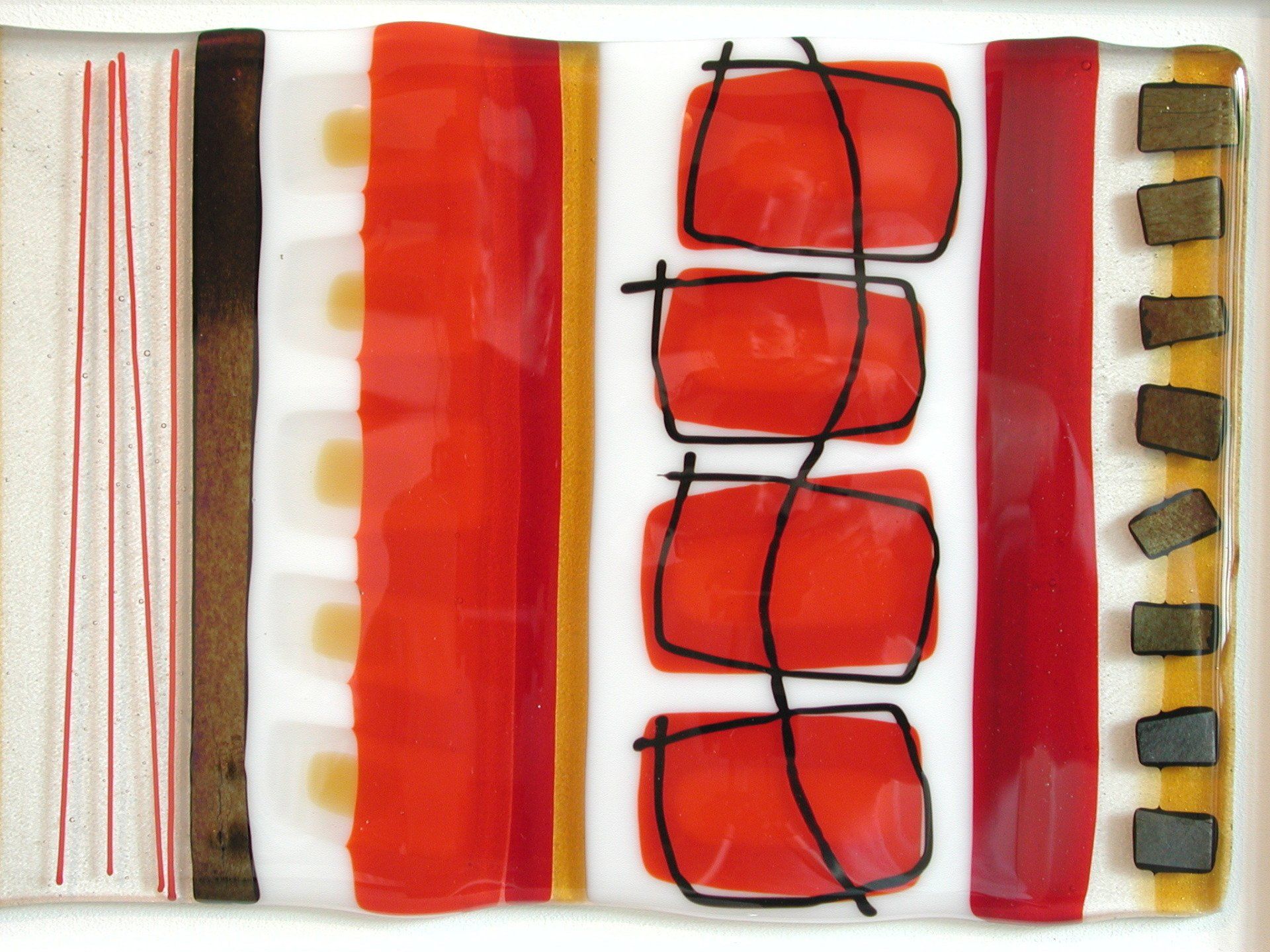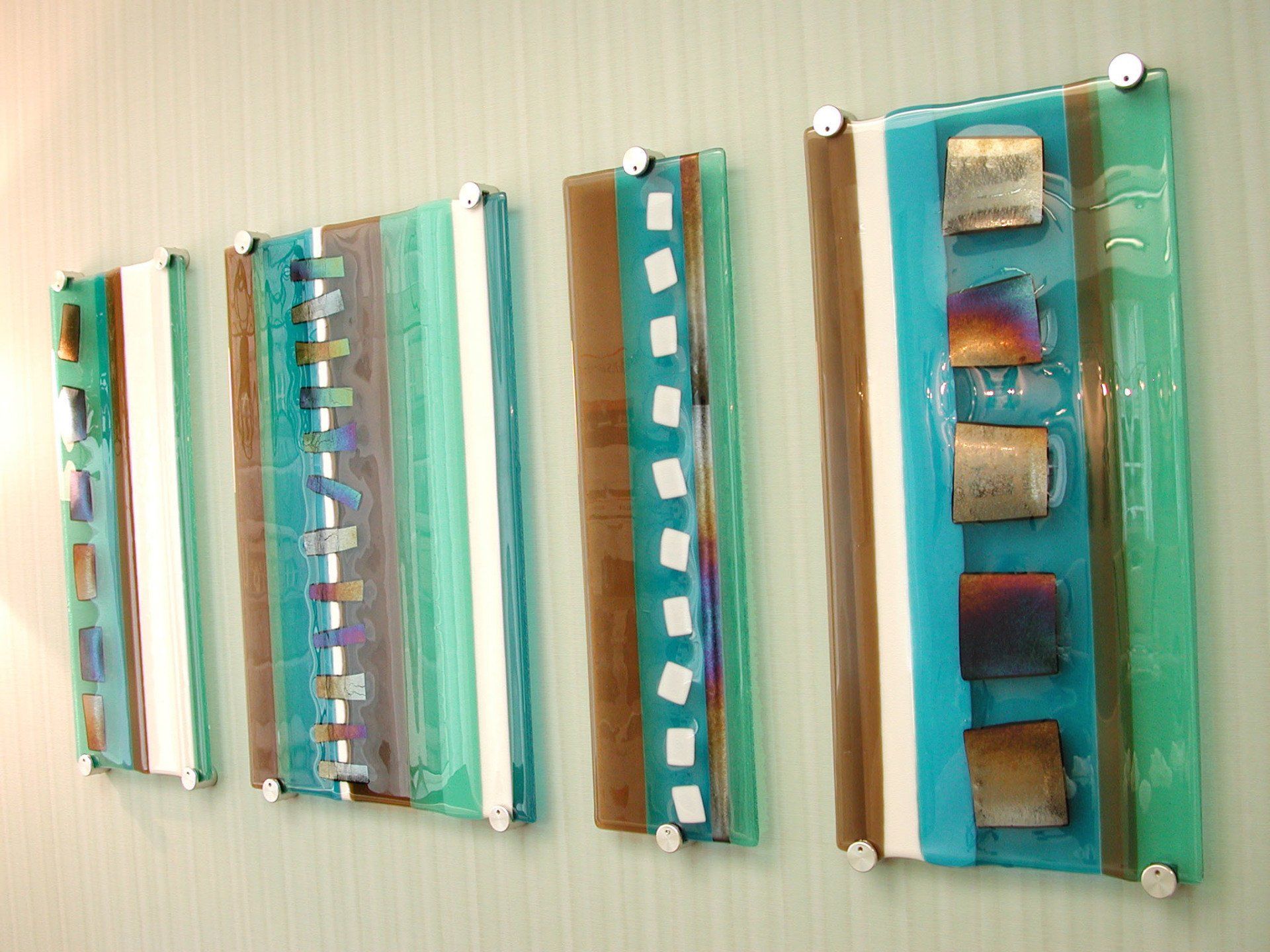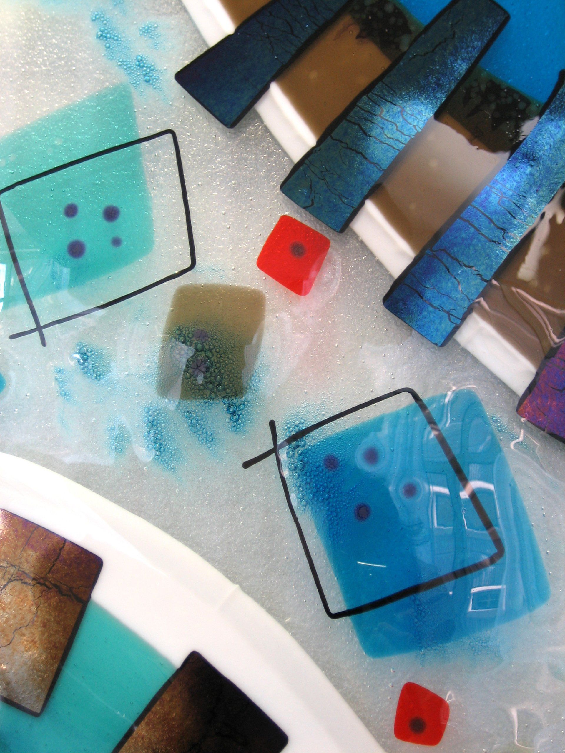 Fused or kilnformed glass is created by cutting pieces of glass and melting them in the kiln often with the addition of smaller glass elements to add finer detail. It generally has a more contemporary look than traditional leaded stained glass which makes it perfect for wall mounted artworks.