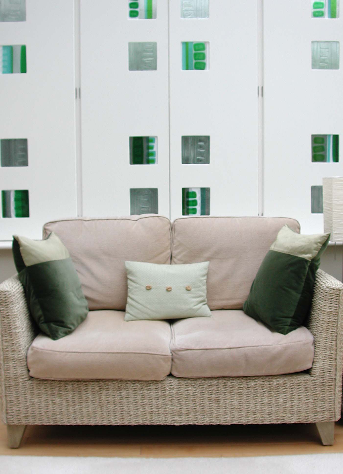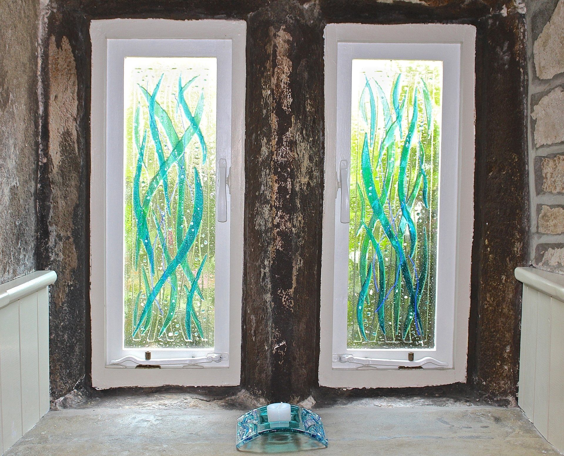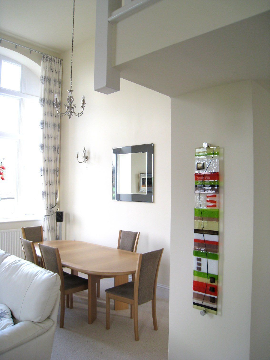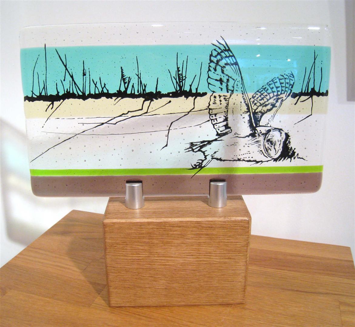 Fused or kilnformed glass is created by cutting pieces of glass and melting them in the kiln often with the addition of smaller glass elements to add finer detail. It generally has a more contemporary look than traditional leaded stained glass which makes it perfect for wall mounted artworks.