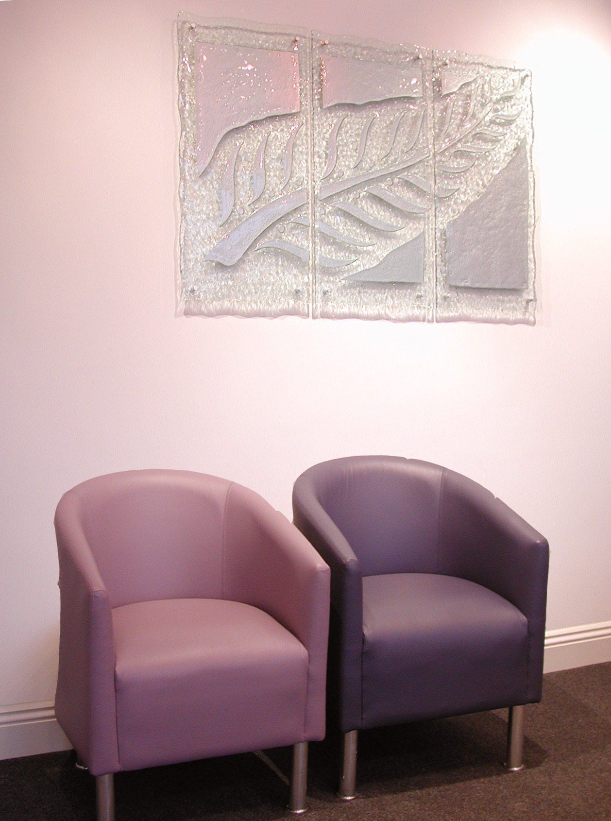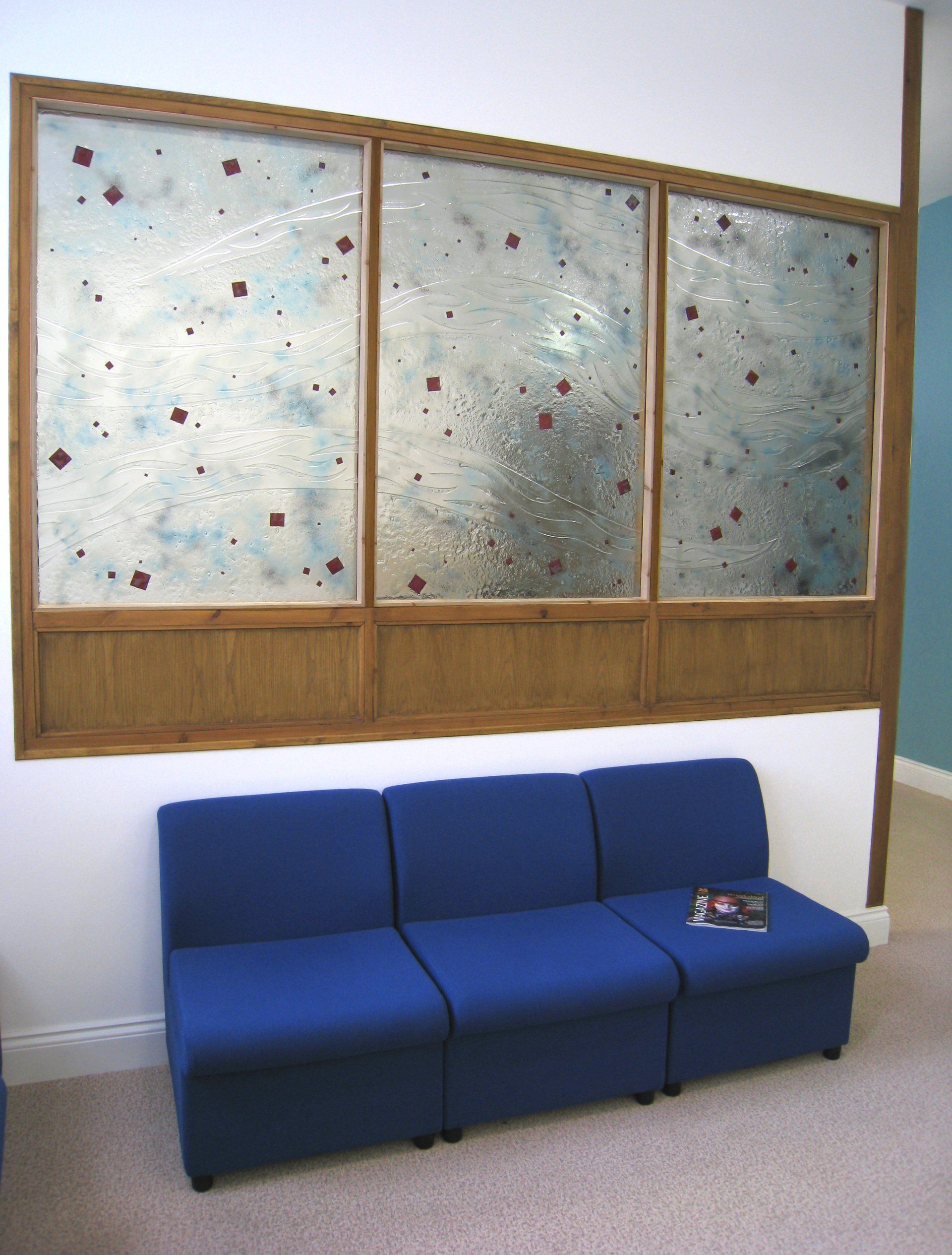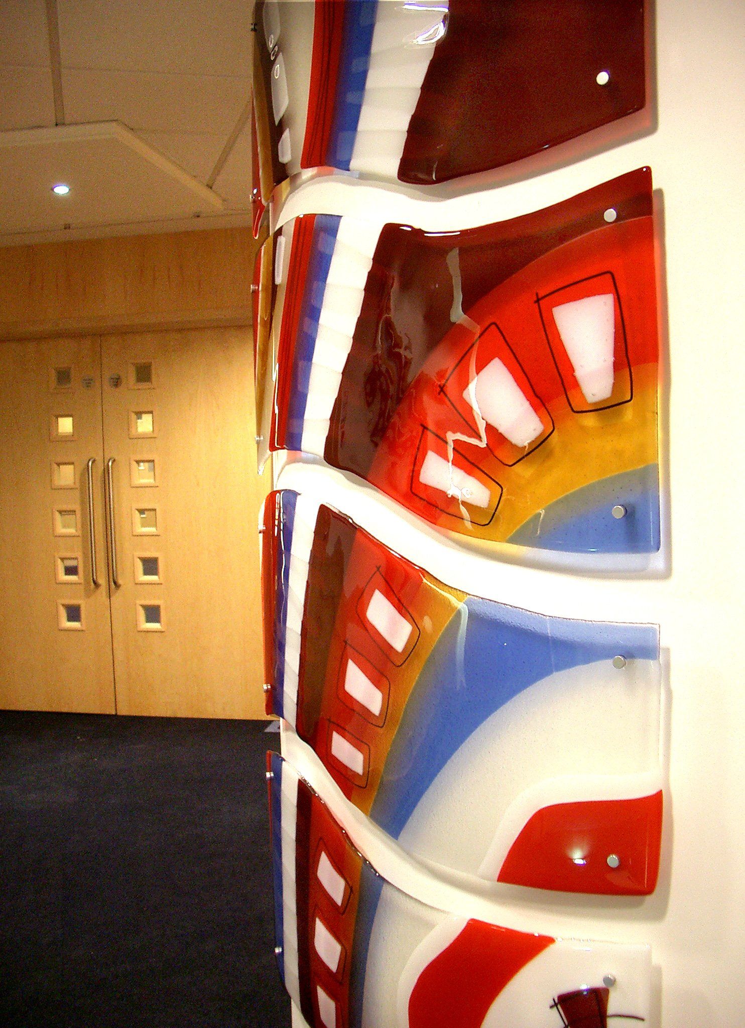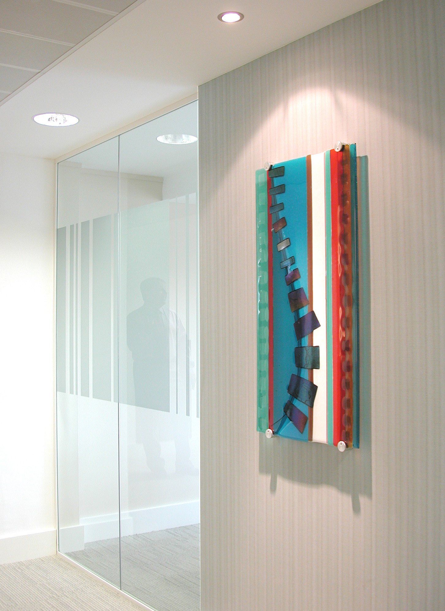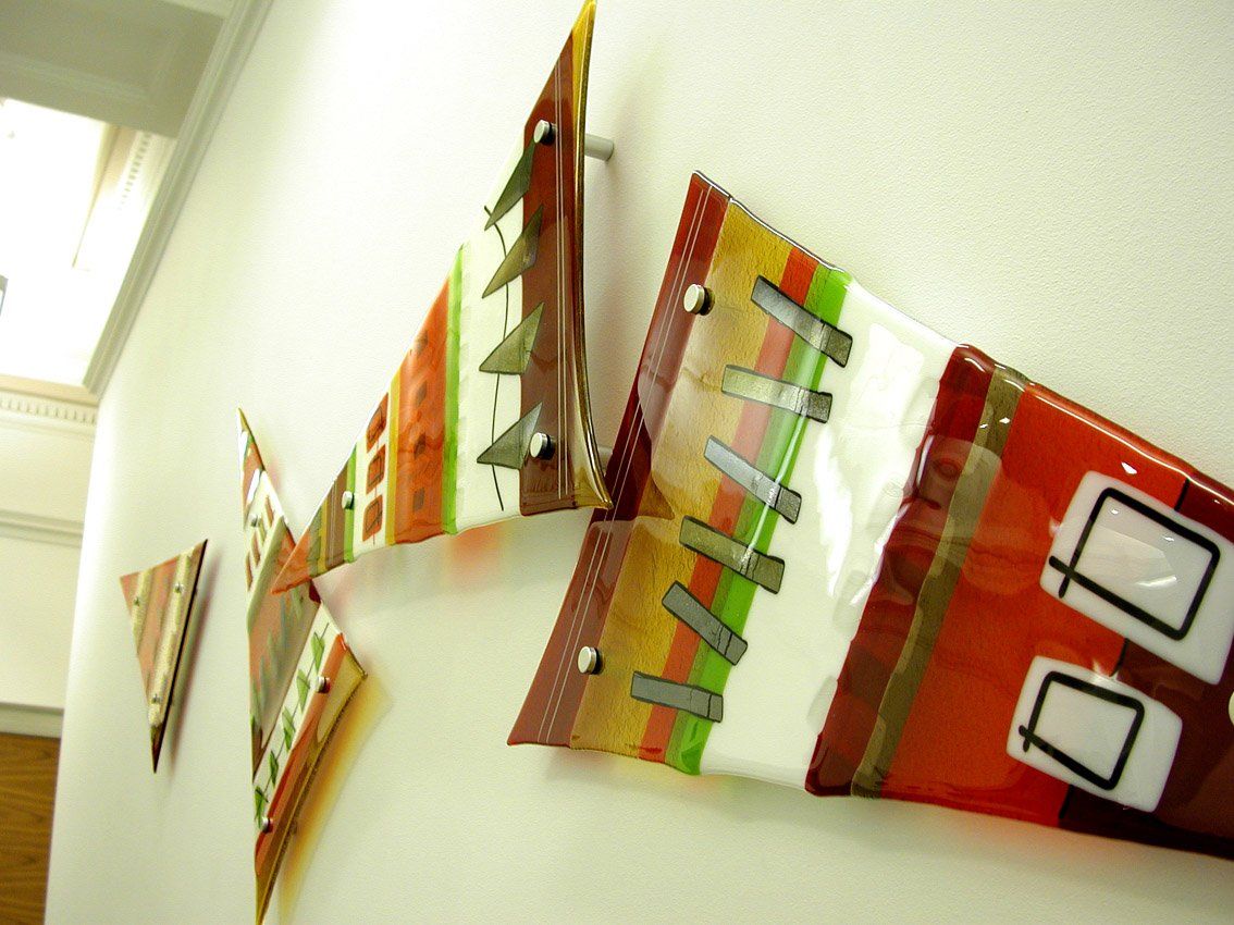 We have worked on many large glass artworks and windows for public places, churches, schools and offices as well as large scale residential projects where the glass artwork may be smaller but multiple items are required to create a cohisive look throughout the space.