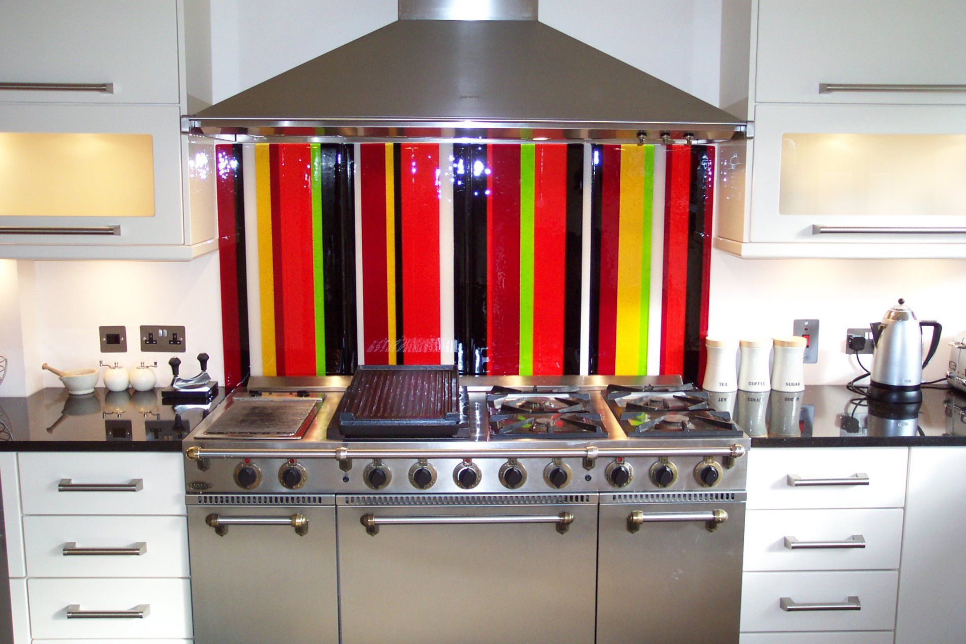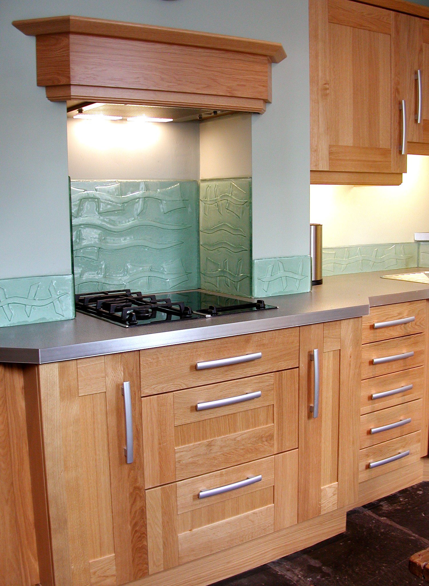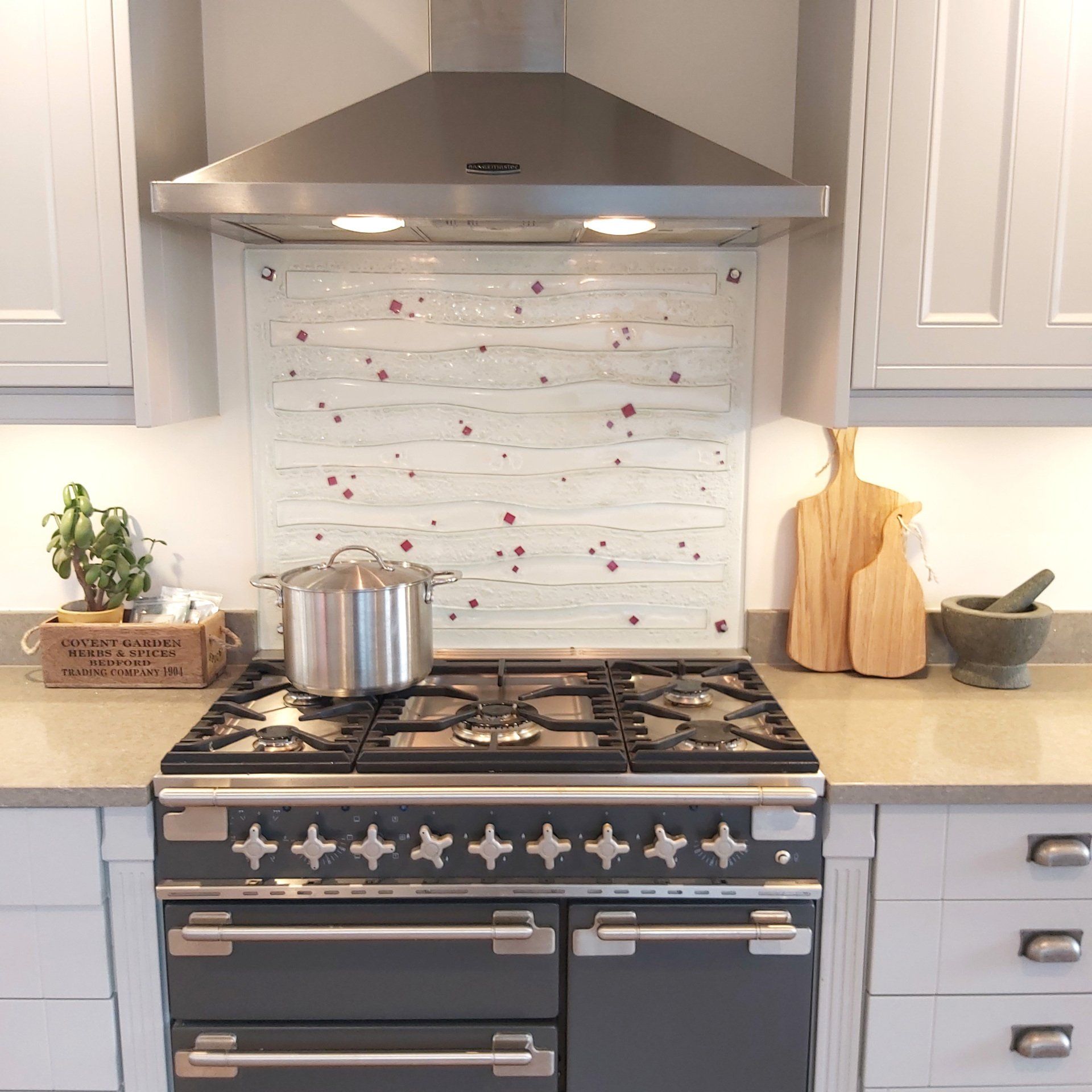The Fused Glass Splashbacks in this portfolio have been solely designed and made by us here at Stonegate Glass Studio and Gallery. They are a great, contemporary alternative to tiles, with a crisp clean look in a wide variety of colours and designs. They are easy to fit and give a warmer feel than stainless steel.... More Info